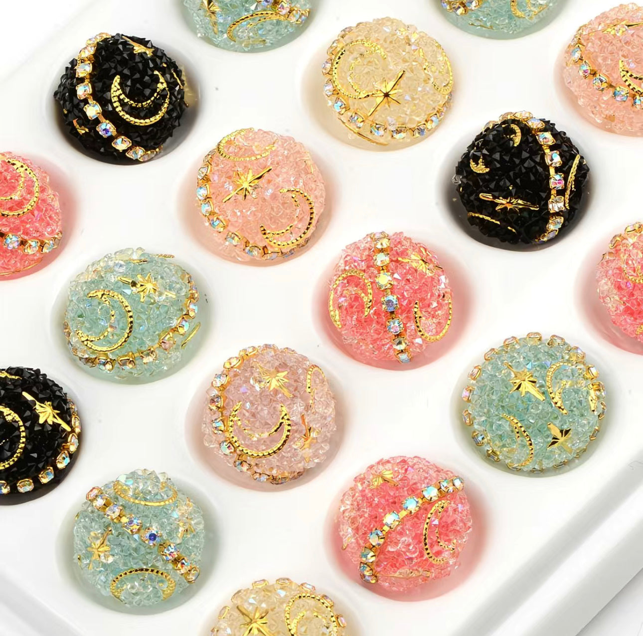 These beautiful star and moon-shaped sugar beads are perfect for all kinds of DIY projects. Made of high quality material, they are shiny, durable and not easy to fall off.